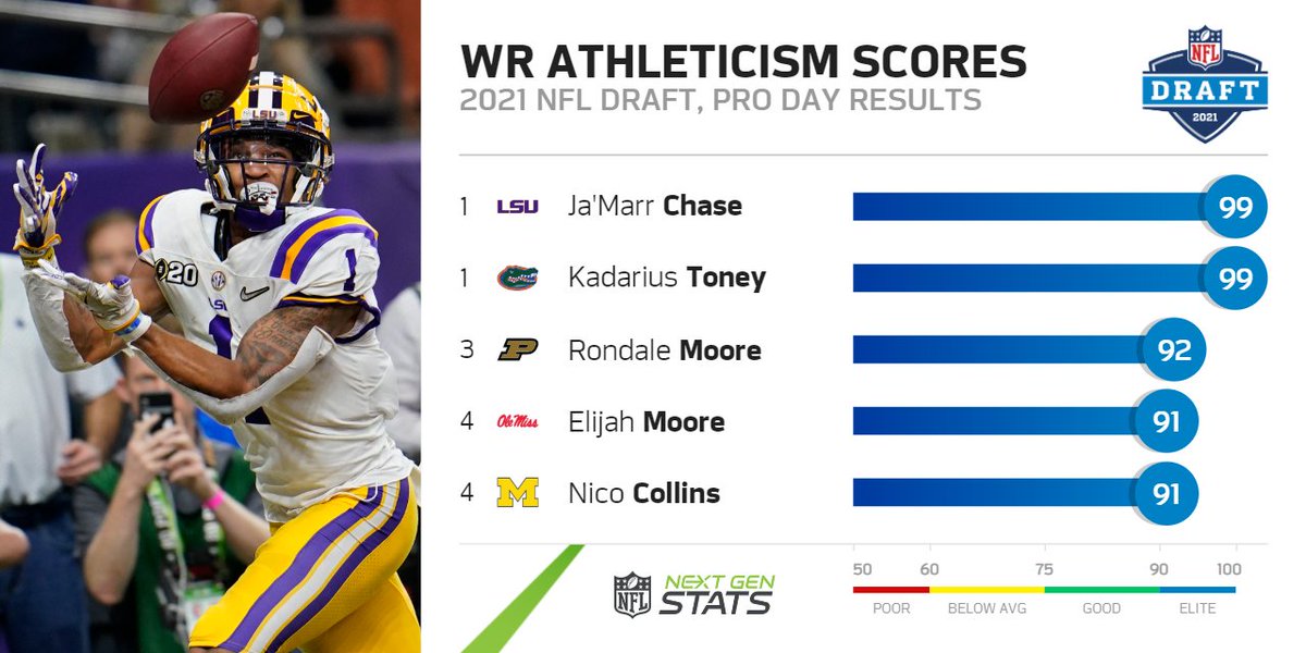 Next Gen Stats On Twitter The Nfldraft Pro Day Circuit Is Now Complete Ja Marr Chase Lsu Kadarius Toney Florida Rank Atop The 2021 Wide Receiver Class When It Comes To Their